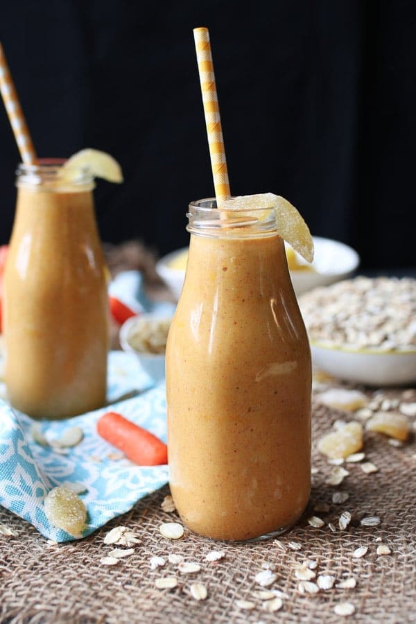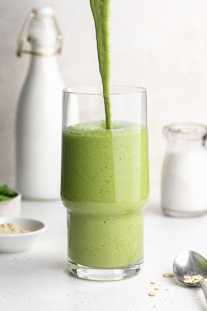 This one adds antioxidants from blueberries and healthy fats from almond butter. It is nutrient dense and very filling, which makes it great as a quick meal replacement when you do not have time for a full breakfast.
